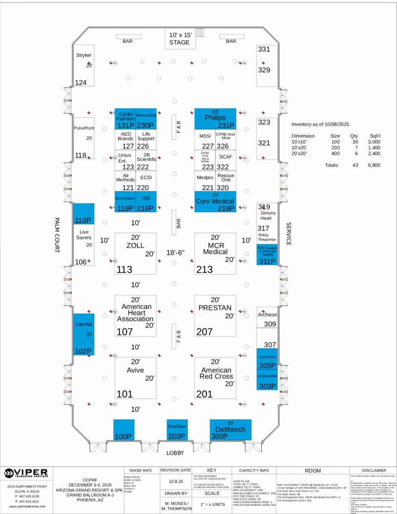 Viper Tradeshow Services is the official service contractor for the 2025 Cardiac Arrest Survival Summit. All materials including electrical, booth furnishings, plants, labor, freight, crate storage, equipment, etc., must be ordered through Viper Tradeshow Services. An exhibitor toolkit will be provided in September to the company contact listed during registration.